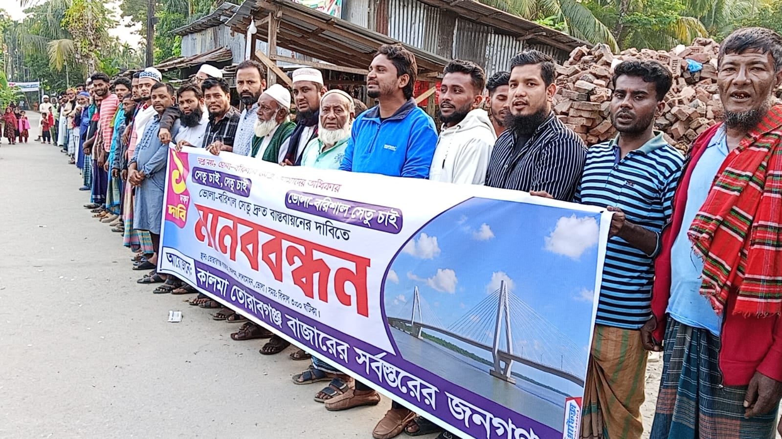 কালমার তোরাবগঞ্জে ভোলা–বরিশাল সেতুর দাবিতে মানববন্ধন