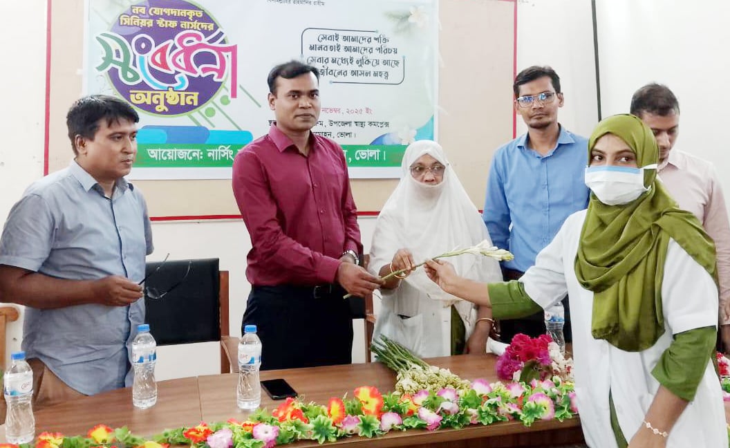 লালমোহনে নবযোগদানকৃত সিনিয়র স্টাফ নার্সদের সংবর্ধনা